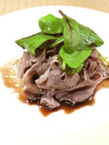 牛ロースはブイヨンスープにさっとくぐらせ、氷水で冷ます