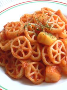 「1」の皮を剥きサイコロ状にカット、ルオーテを指定時間茹でておく