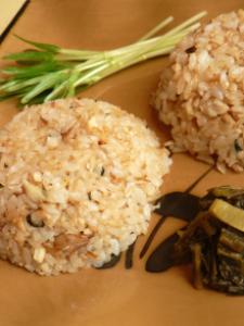「2」にごはん、ゴマ、塩、ポン酢を追加して炒めれば完成!