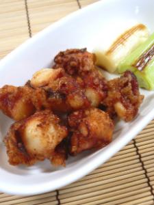 たこをブツ切りにしてビニール袋に入れ、から揚げ粉を追加してよく揉みこむ