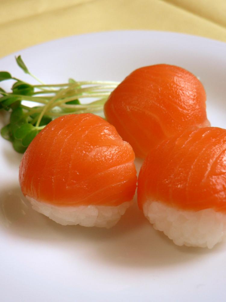 ラップにサーモンを乗せ、酢めしを小さじ2くらい入れる
