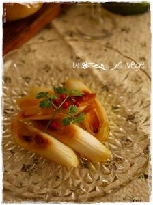 長ネギを焼いて柔らかくなったら、シェリー酒酢をサッと入れて火を消す。