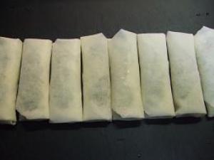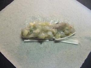 ![]() ☆&エビ&みじん切りネギ&生姜をよく混ぜて、春巻きの皮に白髪ネギ&具材をのせて・・・