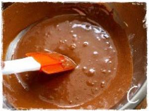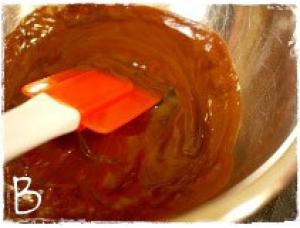![]() 別のボウルにチョコレートを砕いてバターを入れ湯煎にかけて溶かす。(写真B)