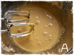 ![]() ボウルに卵黄を入れ砂糖を50g加えて白くもったりするまで混ぜる。(写真A)