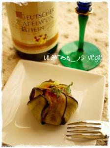 包んだ茄子を冷蔵庫で冷やして上にカイワレなどを沿えて出来上がり。
