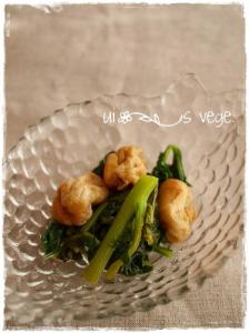 お麩は水につけて柔らかくする。のらぼう菜は洗って食べやすい長さに切る。