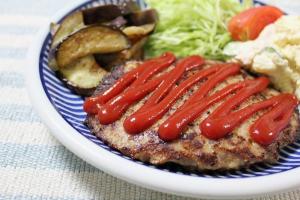 とろけるスライスチーズをハンバーグの中に入れ、形を整えます。