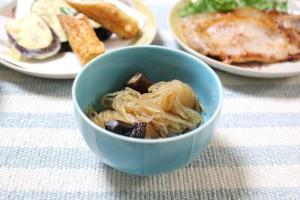 結びしらたき・4等分に切った椎茸をめんつゆで煮たら出来上がり。