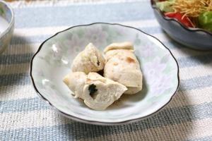 鶏ささみに切れ目を入れて広げ、青しそ1枚・スライスチーズ1/2枚を入れて巻きます。