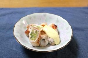 マヨネーズ・カレー粉を混ぜて作ったカレーマヨを、肉巻きゴーヤにかけたら出来上がり。