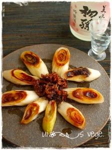 ネギが冷たくなったらお皿に並べ揚げネギを沿えてオリーブオイルをほんの少しかけて出来上がり。