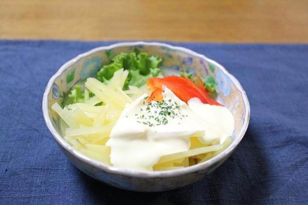 じゃがいもの皮を剥き千切りにします。