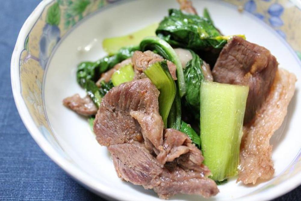 ラム肉は一口大に切り、チンゲン菜はざく切りにします。
