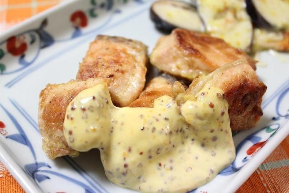 粒マスタード・マヨネーズ・はちみつを混ぜ合わせて、ハニーマスタードソースを作ります。