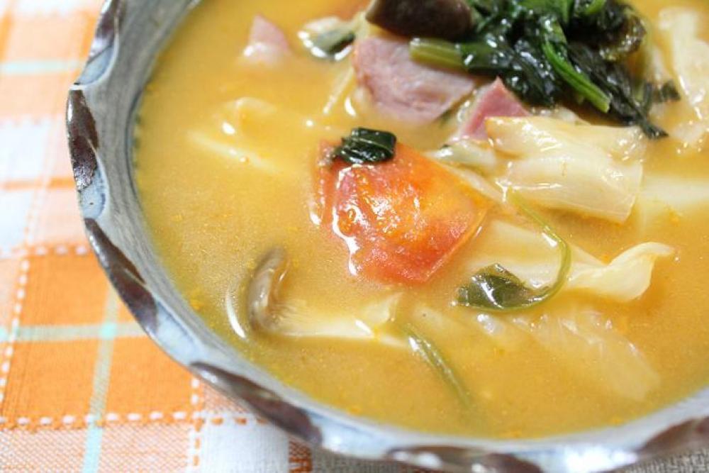 鍋に切った材料とトマトチーズ鍋の素を入れ、煮込んだら出来上がり。