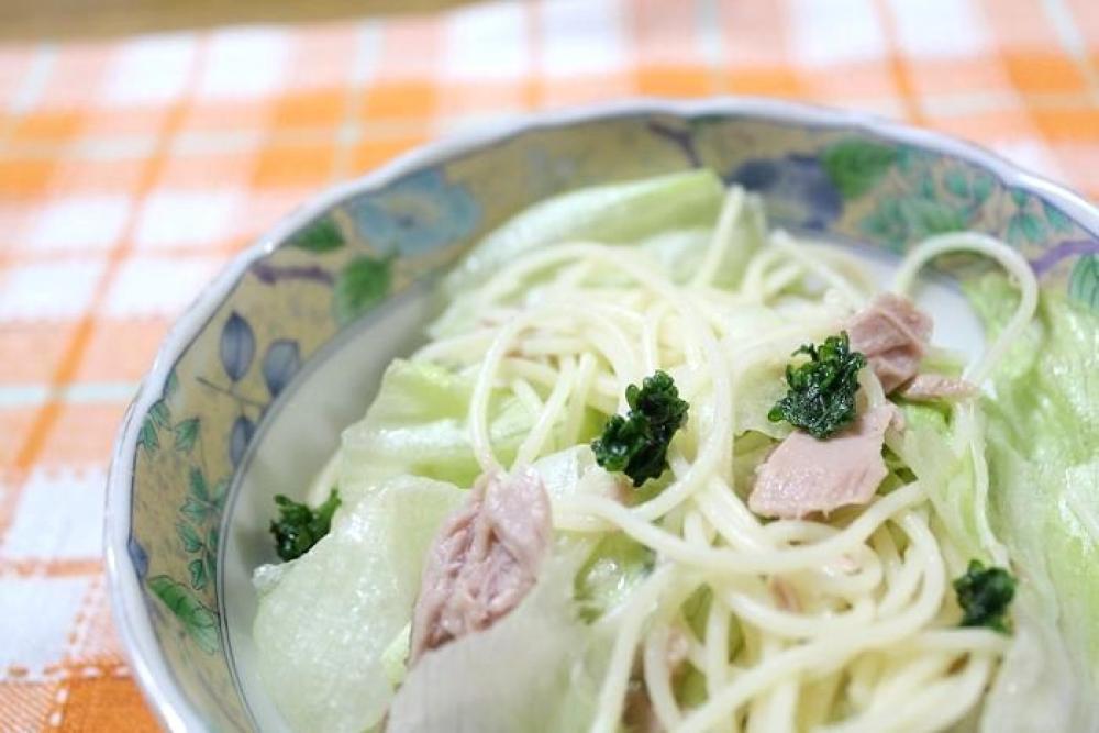 千切ったレタス・油切りしたツナ・サラダ用パスタ・イタリアンドレッシングを混ぜ合わせます。