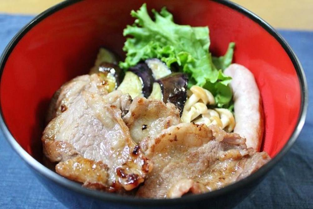 油を熱したフライパンで、ウィンナー・ブナピー・茄子を炒め、焼肉のたれで味付けをし取り出します。