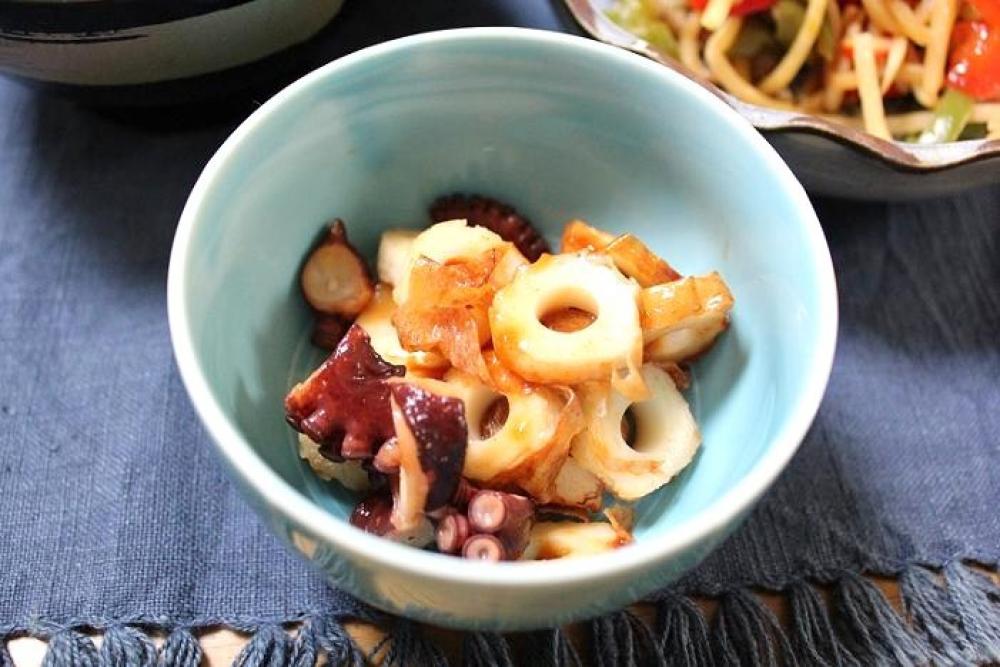 煮だこ・ちくわ・コチュジャンを和えたら出来上がり。