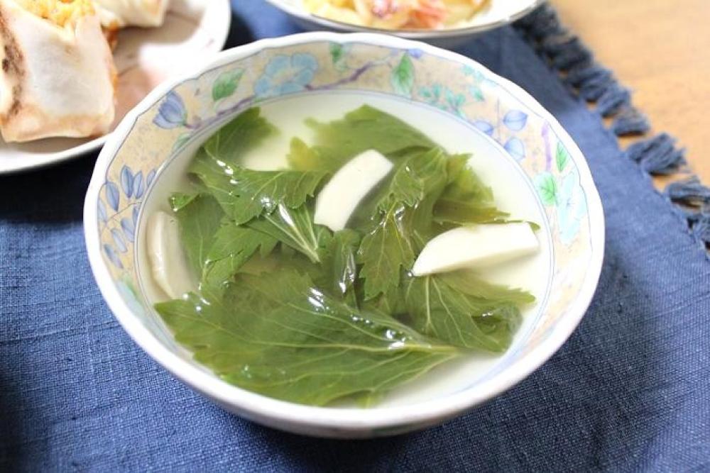 エリンギ・セロリの葉を入れて軽く煮立て、塩コショウをして味を整えたら出来上がり。