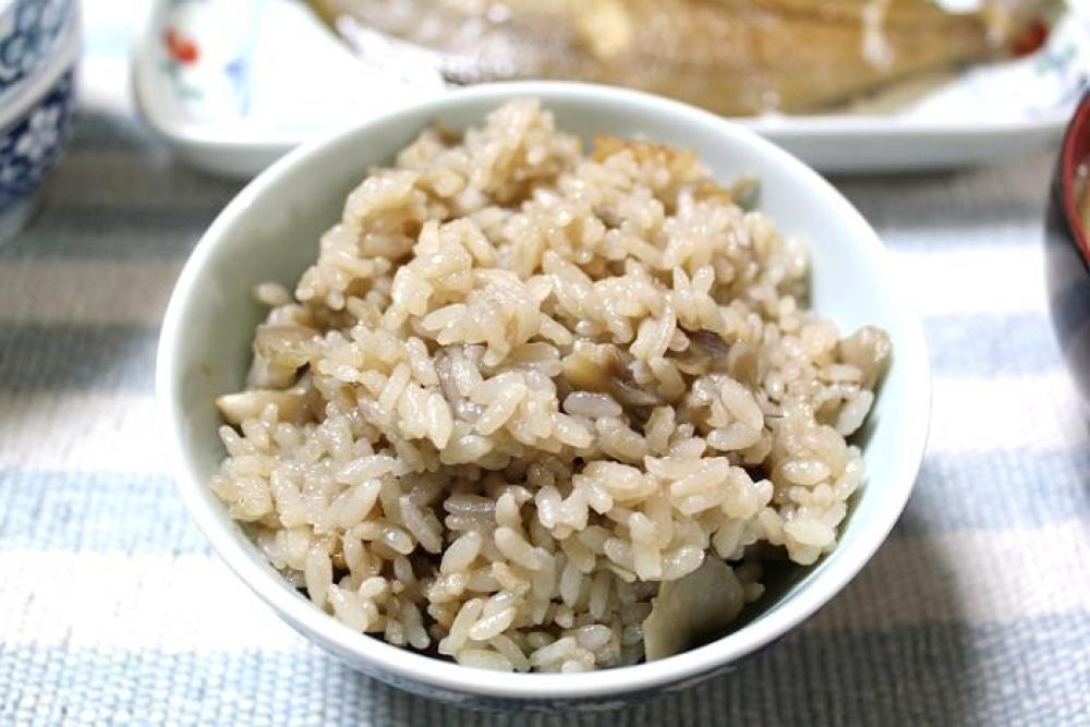 お釜に調味料を入れてから水を加え、お米を炊く分量に調整し、材料を加えて炊きこんだら出来上がり。