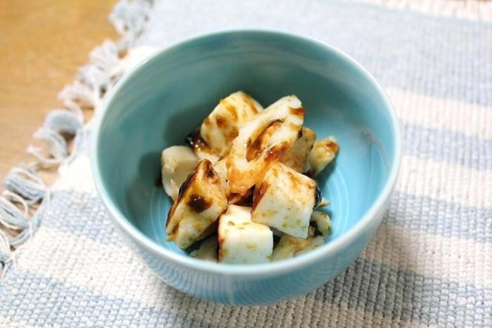 はんぺん・ちくわを海苔の佃煮で和えたら出来上がり。