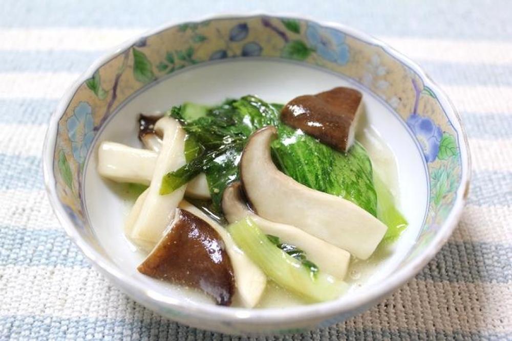 チンゲン菜はざく切りに、エリンギ・椎茸は一口大に切り分けます。