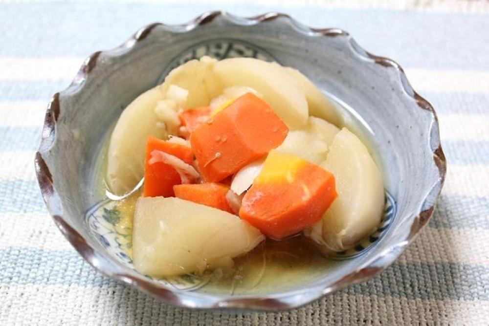 鍋にかぶ・人参・ゆり根を入れ、ひたひたになるまで水を加えます。
