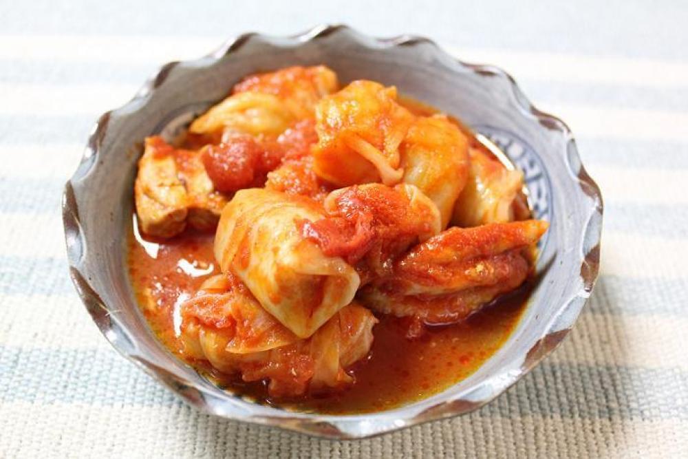 冷凍ミニロールキャベツ・トマト缶・コンソメスープの素を加えて煮込みます。