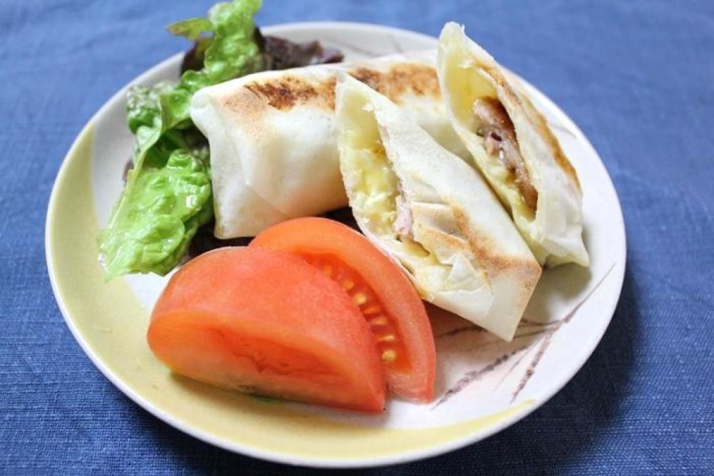 春巻きの皮にとろけるチーズ・鶏もも肉・マヨネーズをのせて巻きます。