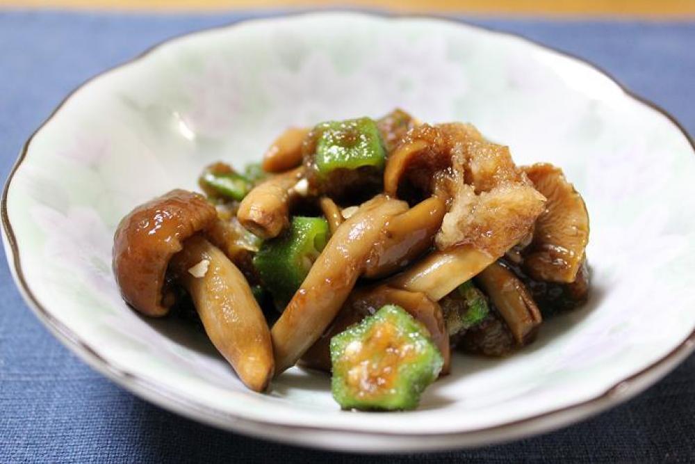 なめこ・オクラ・大根おろしと混ぜ、長澤家の万能つゆを加え、混ぜ合わせたら出来上がり。