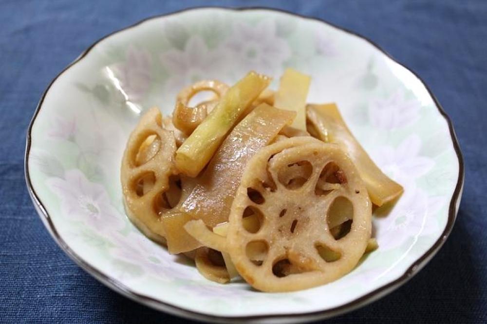 砂糖・しょうゆ・酒を加えて味付けをし、全体を馴染ませるように軽く炒めたら出来上がり。