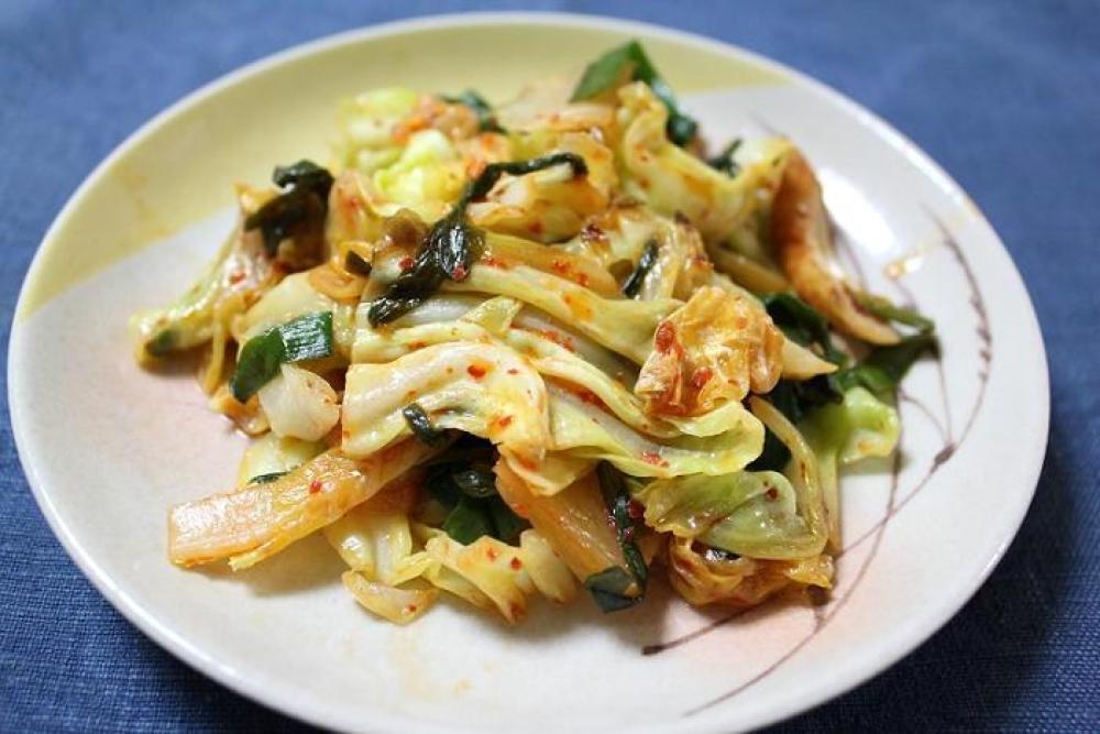キムチ・しょうゆを加えて炒め、味付けをしたら出来上がり。
