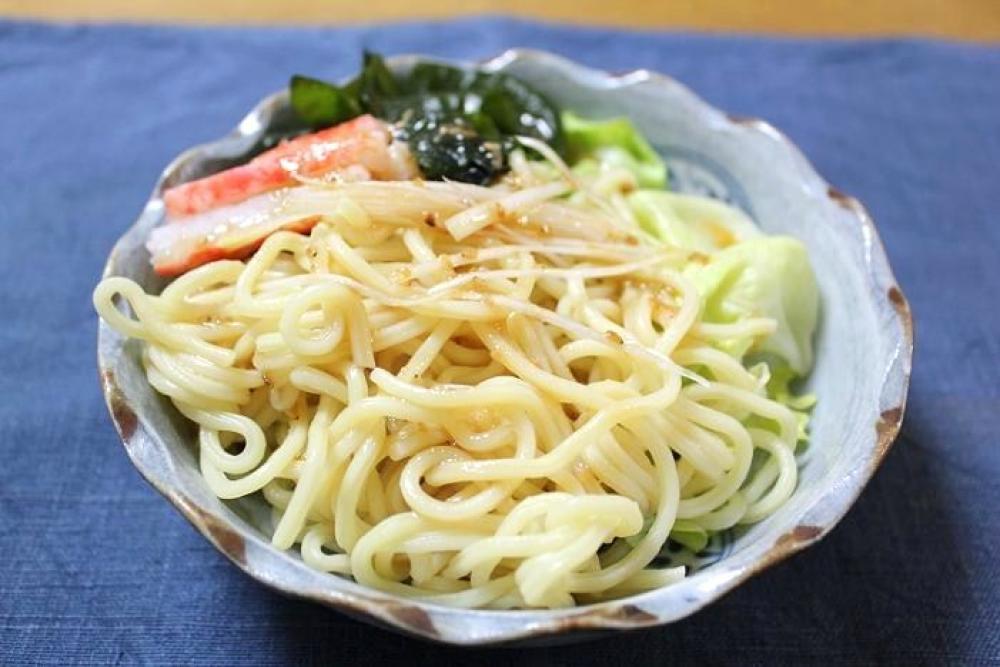 生らーめんを熱湯で茹で、しっかりと水切りをします。