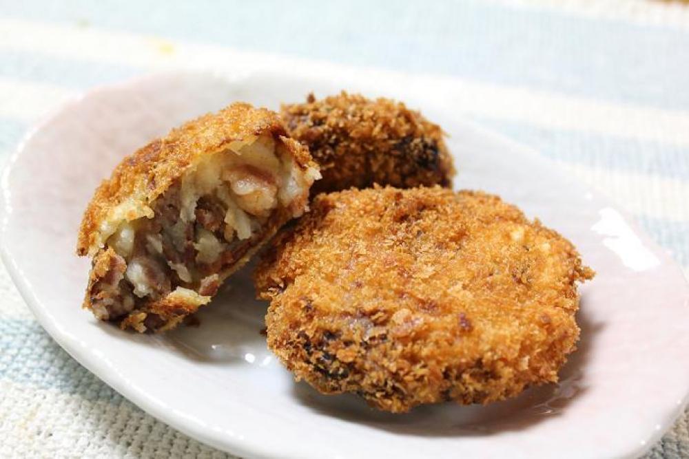③を小麦粉→卵→パン粉の順につけ、揚げ油でカラッと揚げたら出来上がり。
