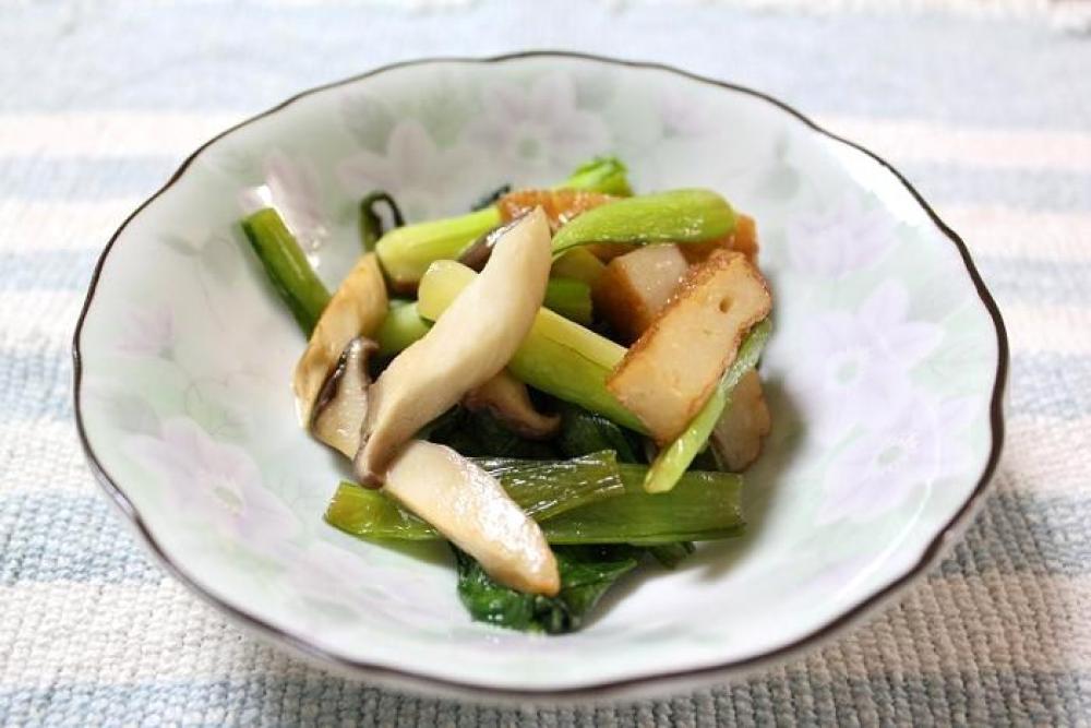 小松菜・さつま揚げ・エリンギを食べやすい大きさに切ります。