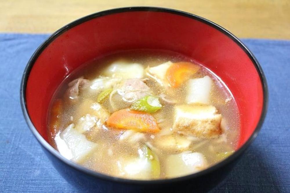 豚肉・人参・椎茸・こんにゃく・長ねぎを適当な大きさに切り分けます。