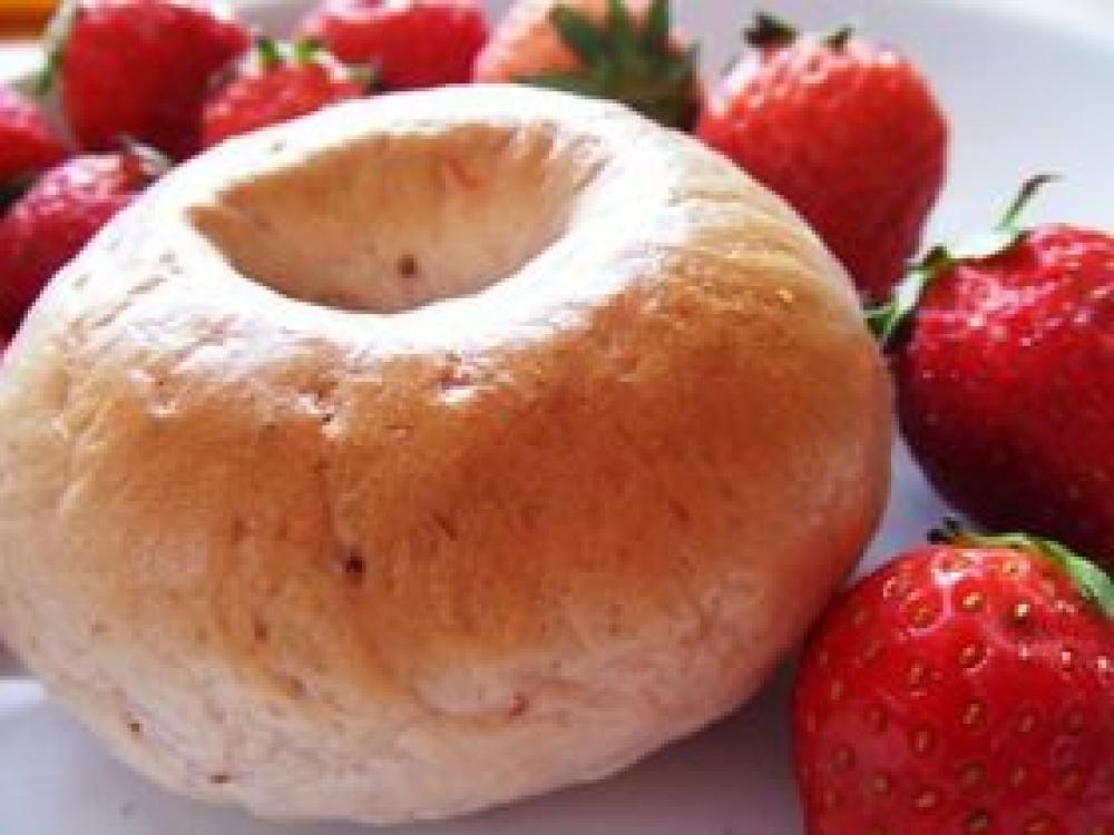 お鍋に湯を沸かし、ベーグルを片面30秒ずつ茹でる。茹でたあと放置するとしわがよるので、全部一度に茹でられるお鍋で!