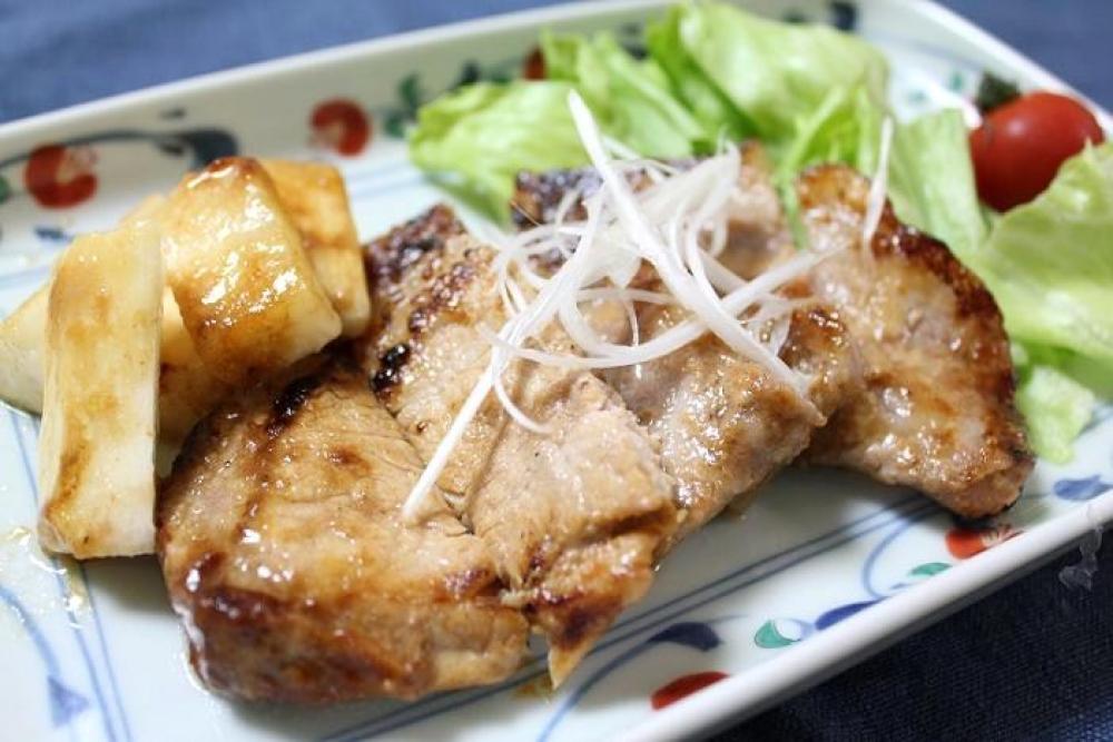 豚ロースをレモン汁・味噌・砂糖に15分ほど漬け込みます。