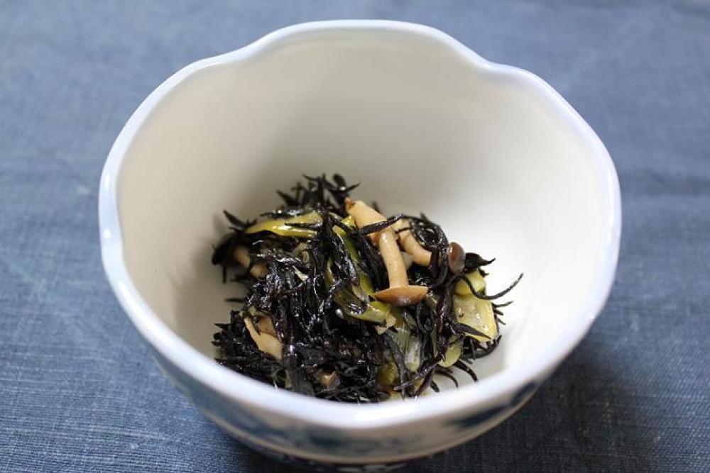 芽ひじきを水で戻し、水気をしっかりと絞ります。