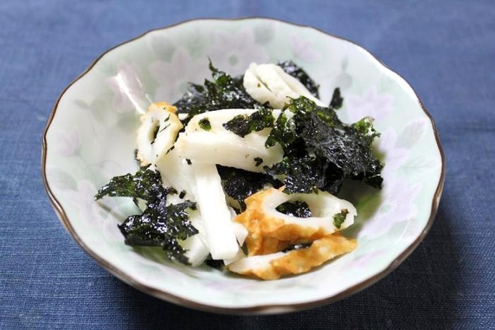 長芋・ちくわ・千切った韓国海苔を和え、しょうゆをかけたら出来上がり。