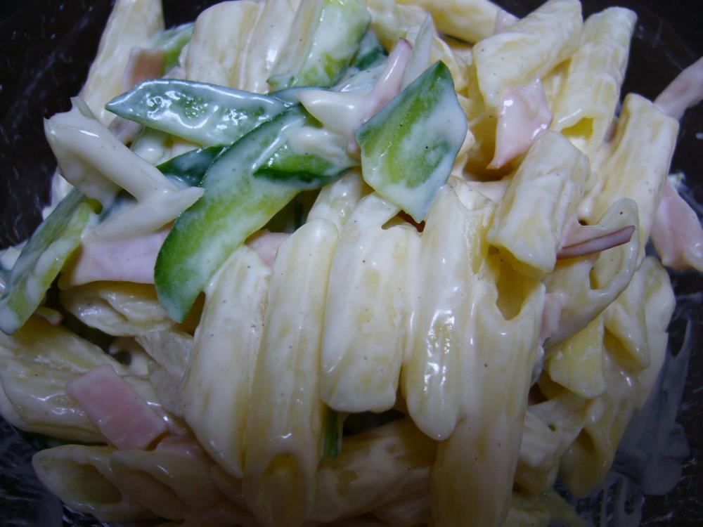 マカロニは記載通りに茹でて、冷水にとり冷ます。