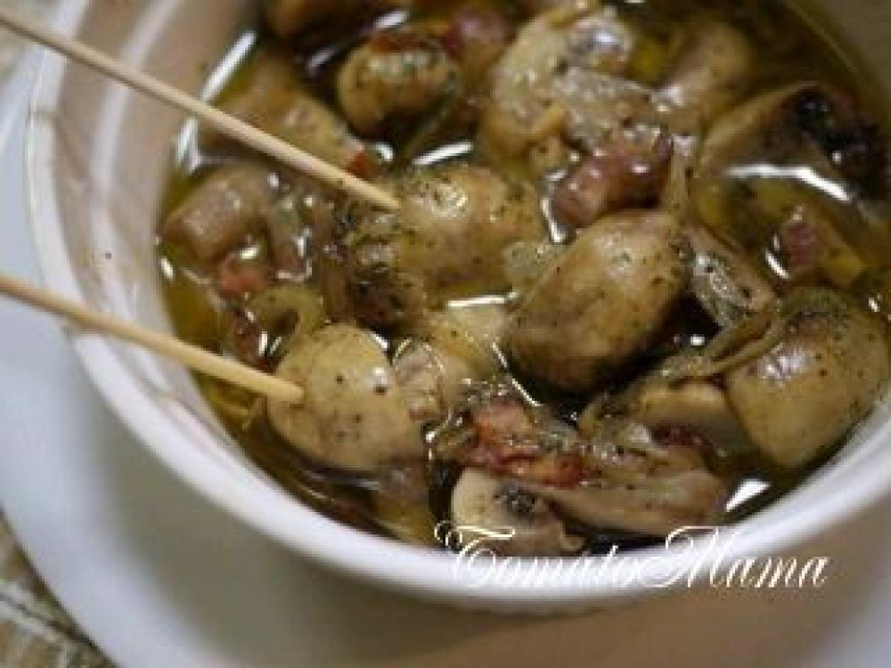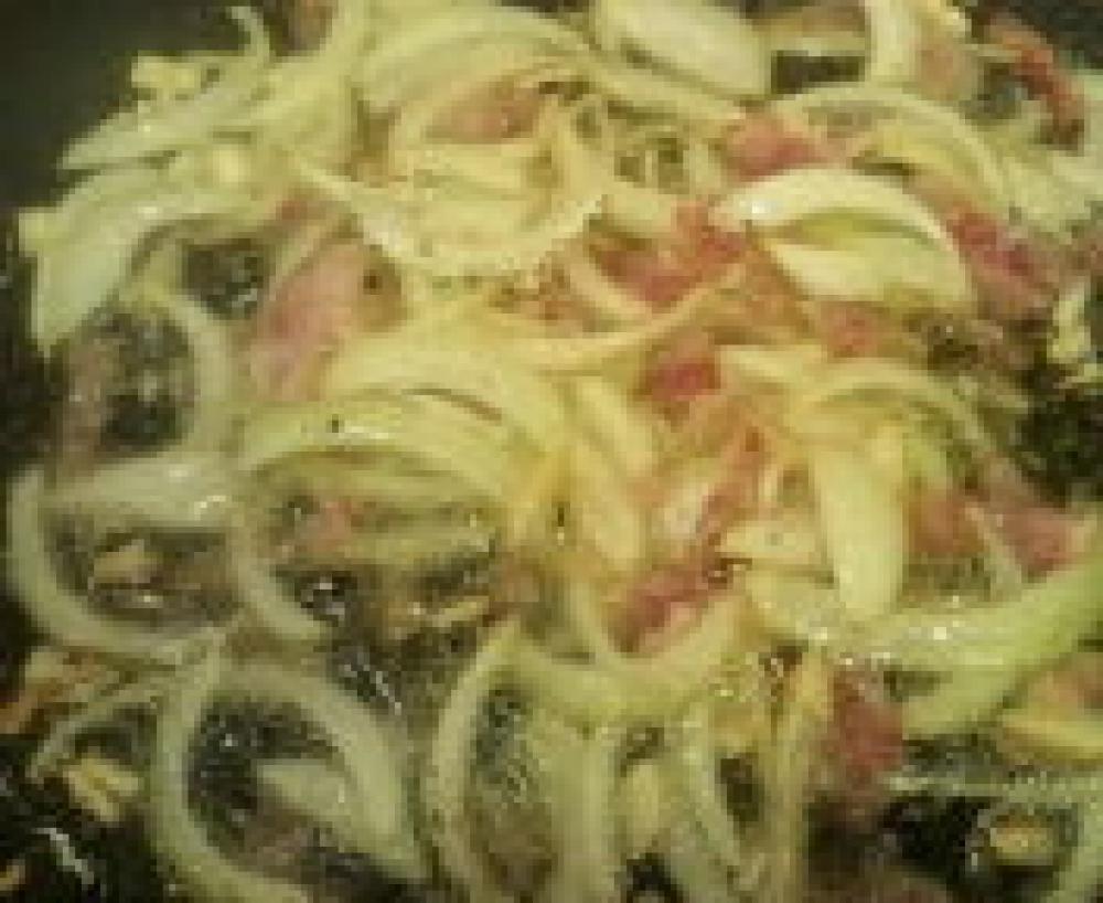 ![]() にんいくの香りが出て来たら、ベーコン・玉ねぎを加、弱火でじっくり炒めマッシュルームを加え炒め、油が回ったら塩・胡椒で味を