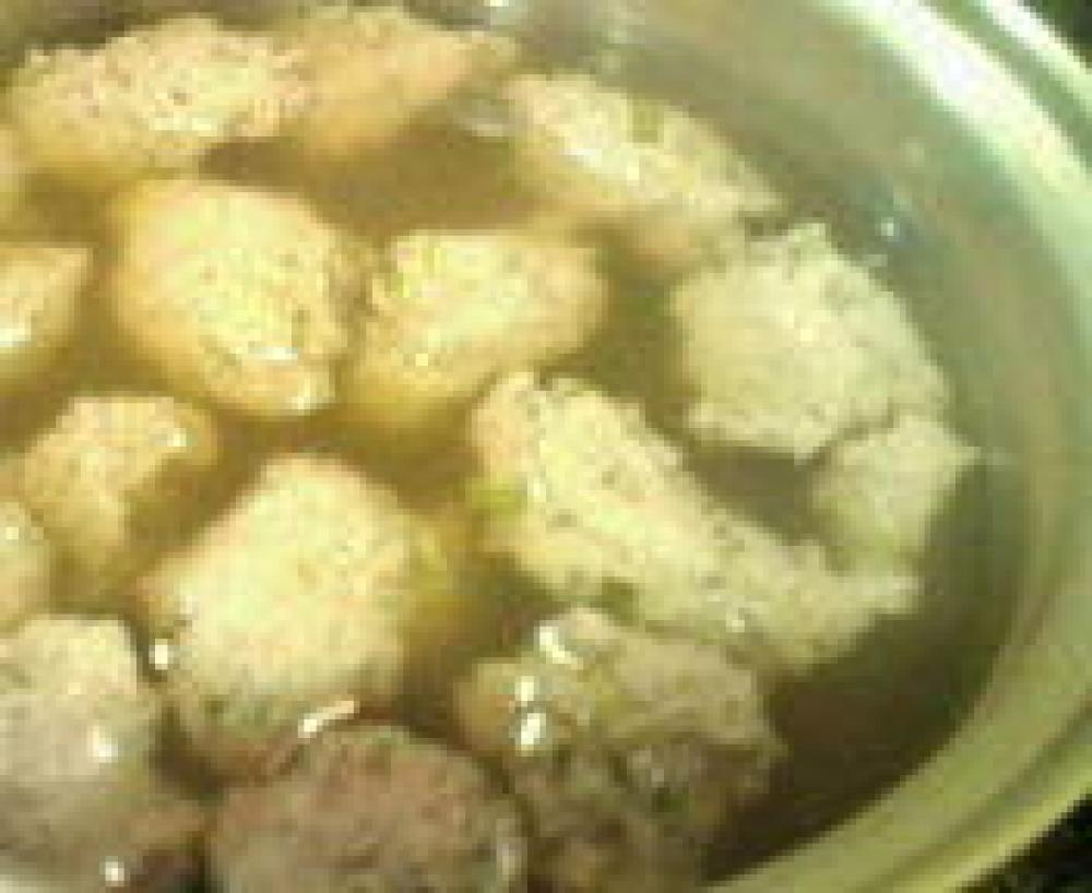 ![]() 鰹と昆布の出汁を沸騰させ1をスプーンで丸め入れ、さいの目に切った豆腐も入れる。