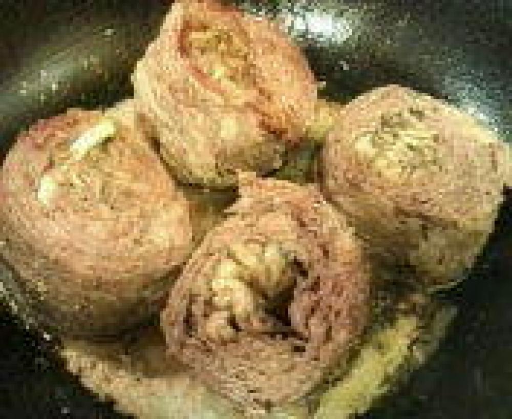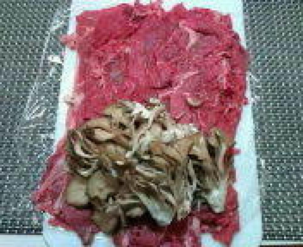 ![]() 【A】舞茸は縦に切り牛肉切り落としはラップの上に広げ切った舞茸をのせ、塩・胡椒をふり海苔巻のように巻く。