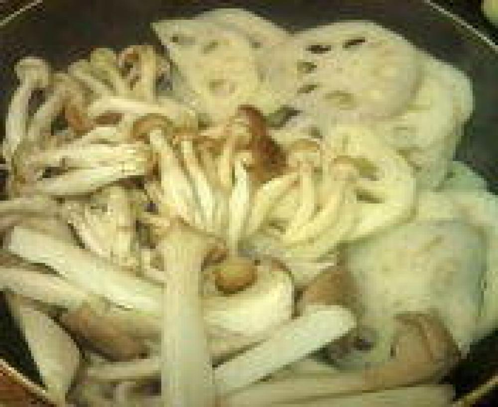 ![]() 【B】レンコンの皮を剥き7㎜の幅に切り、しめじは子房に分ける。