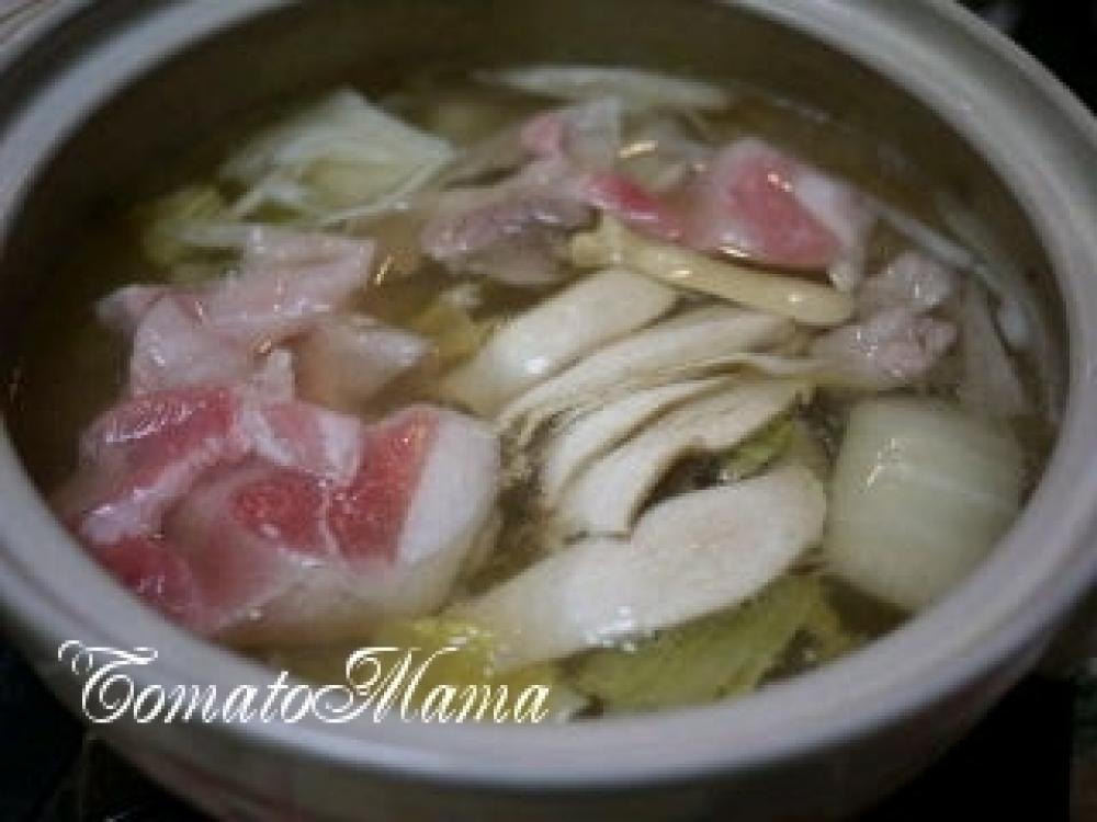 土鍋に割烹白だしと水を入れ沸騰させる。
