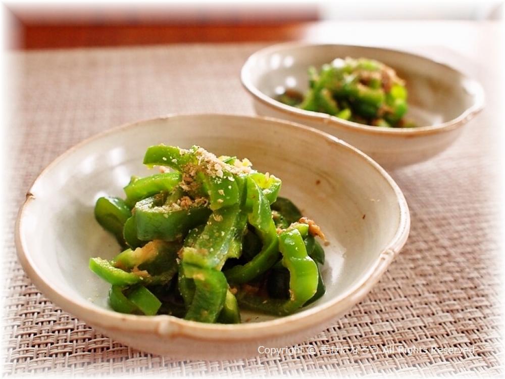 ピーマンは5mm幅に切りレンジで1分半ほど加熱する。