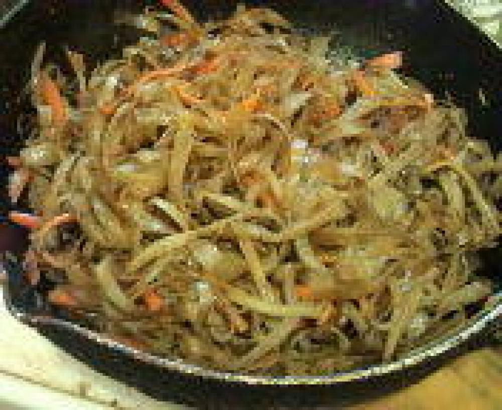 ![]() 1のごぼうをかき混ぜながらながら全体に油をなじませる。