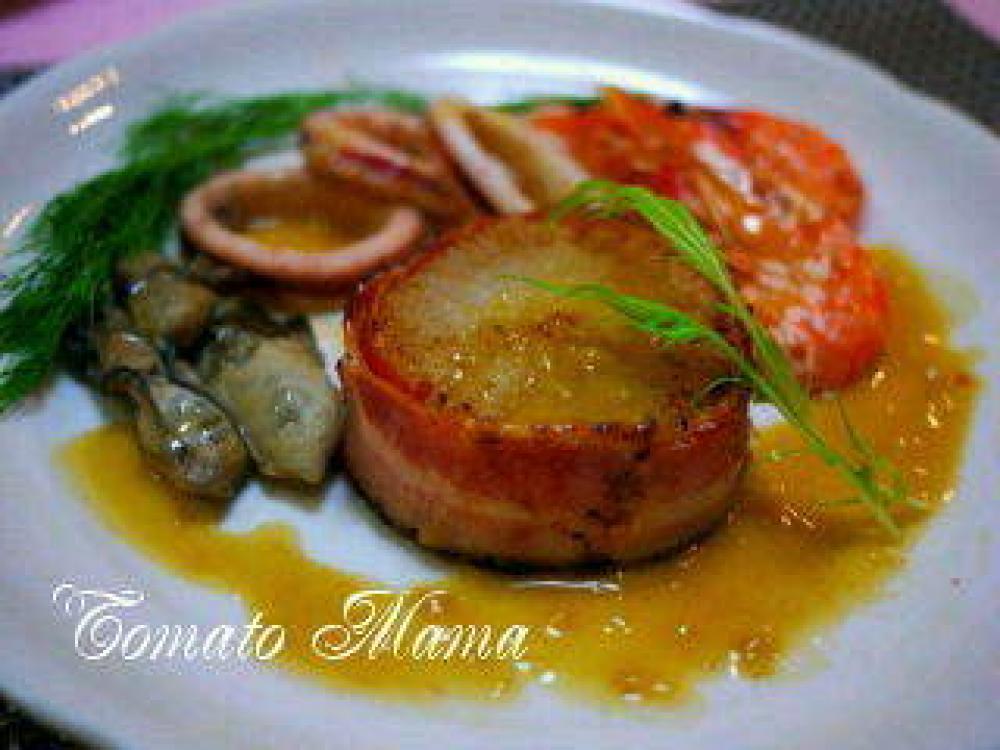 ![]() 海老・イカ・牡蠣をフライパンを洗わずそのまま使い蒸し焼きにする。(タイムパウダー・ホワイトペパー・塩で味付けをする。)
